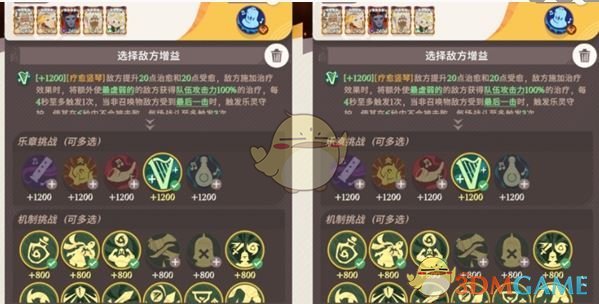 1、我方增益选择:沉醉竖笛+疗愈竖琴。