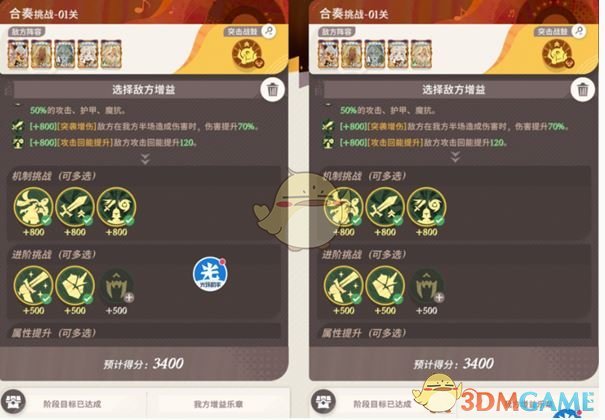 5、3200分勾:第一排3个800分挑战机制+下面2个500分挑战机制。