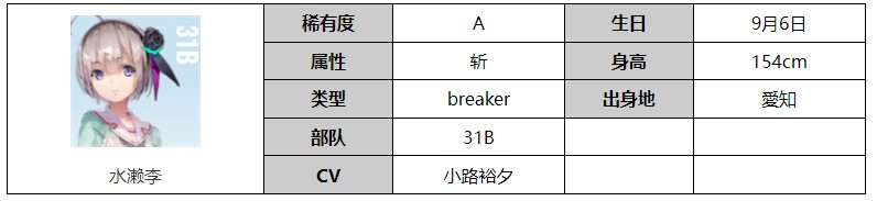 炽焰天穹水濑李怎么样?在游戏中许多玩家对于水濑李这个角色的详细资料信息还不是很清楚,小编已经帮助玩家们整理好了水濑李这个角色的详细数据信息,一起来了解一下吧。