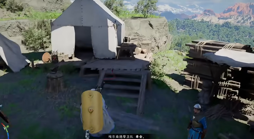 打开地图,抵达火炬烽火台后,找到烽火台旁的营地帐篷,帐篷外观为简易帆布结构,位置显眼。