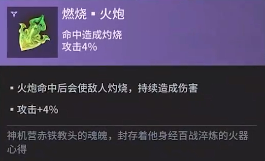 火炮命中后会使敌人灼烧,持续造成伤害,并且会使治疗量降低