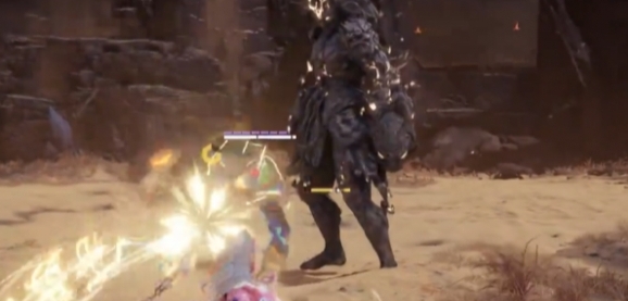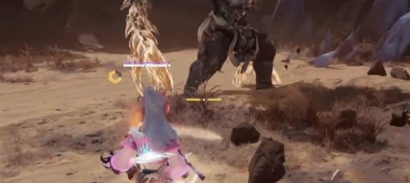 2、然后注意观察怪物的动作,在它释放技能时,使用武器打断它。