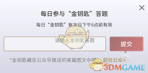 3、输入金钥匙答题,即可获得。