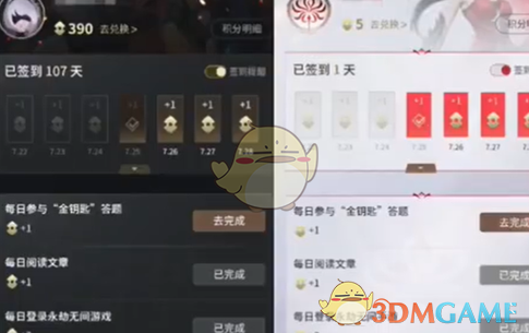 2、福利中心参与每日金钥匙答题、登录游戏、阅读文章兑换积分。