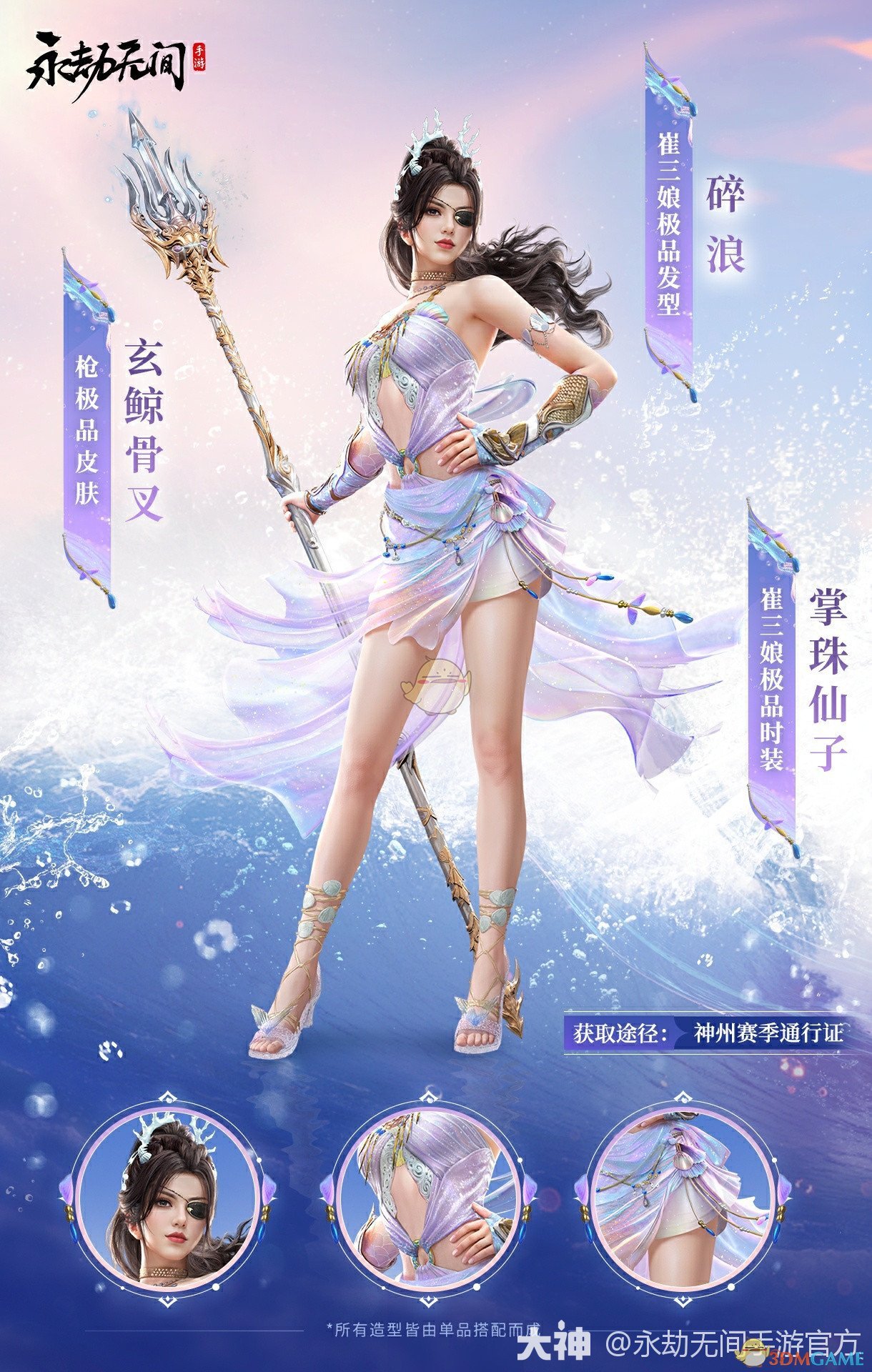 呈银骨感美和瀚海色,波涛激荡枪头,似有分割大海的力量,高贵不失威严,尽显龙王气质。