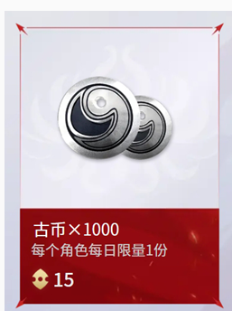 古币1000:15积分【每个角色每日限量1份】