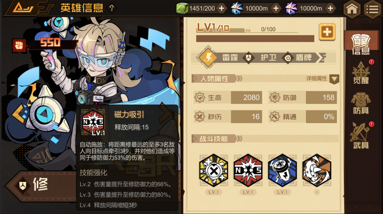 技能强化:Lv.2 每层【感电】效果提供防御提升至3%;Lv.3 同时【感电】效果提供额外效果命中;Lv.4 每层【感电】效果提供防御提升至4%