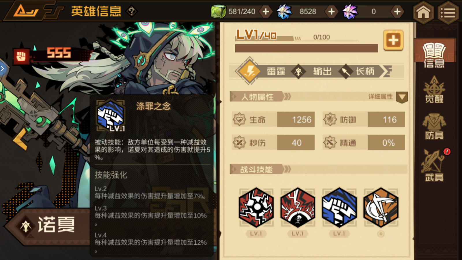 技能强化:Lv.2 伤害提升至241%秒伤;Lv.3 【禁疗】效果层数增加,诺夏具有的【感电】效果可提供额外的效果命中;Lv.4 伤害提升至292%秒伤