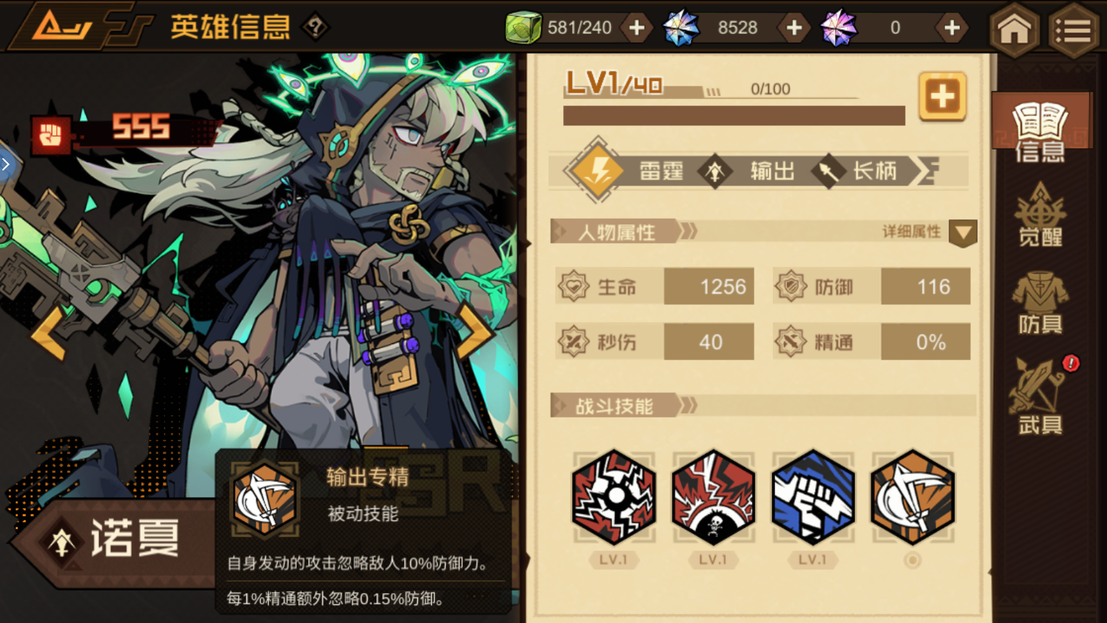 技能介绍:自身发动的攻击忽略敌人10%防御力