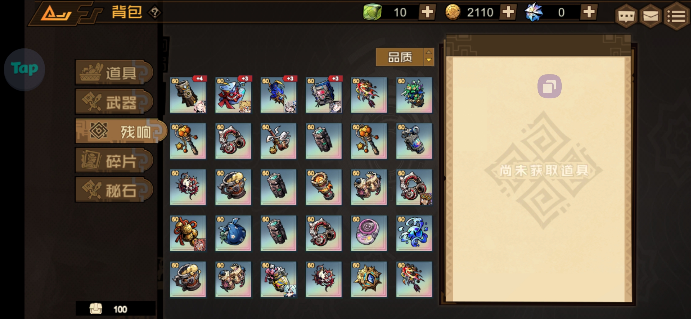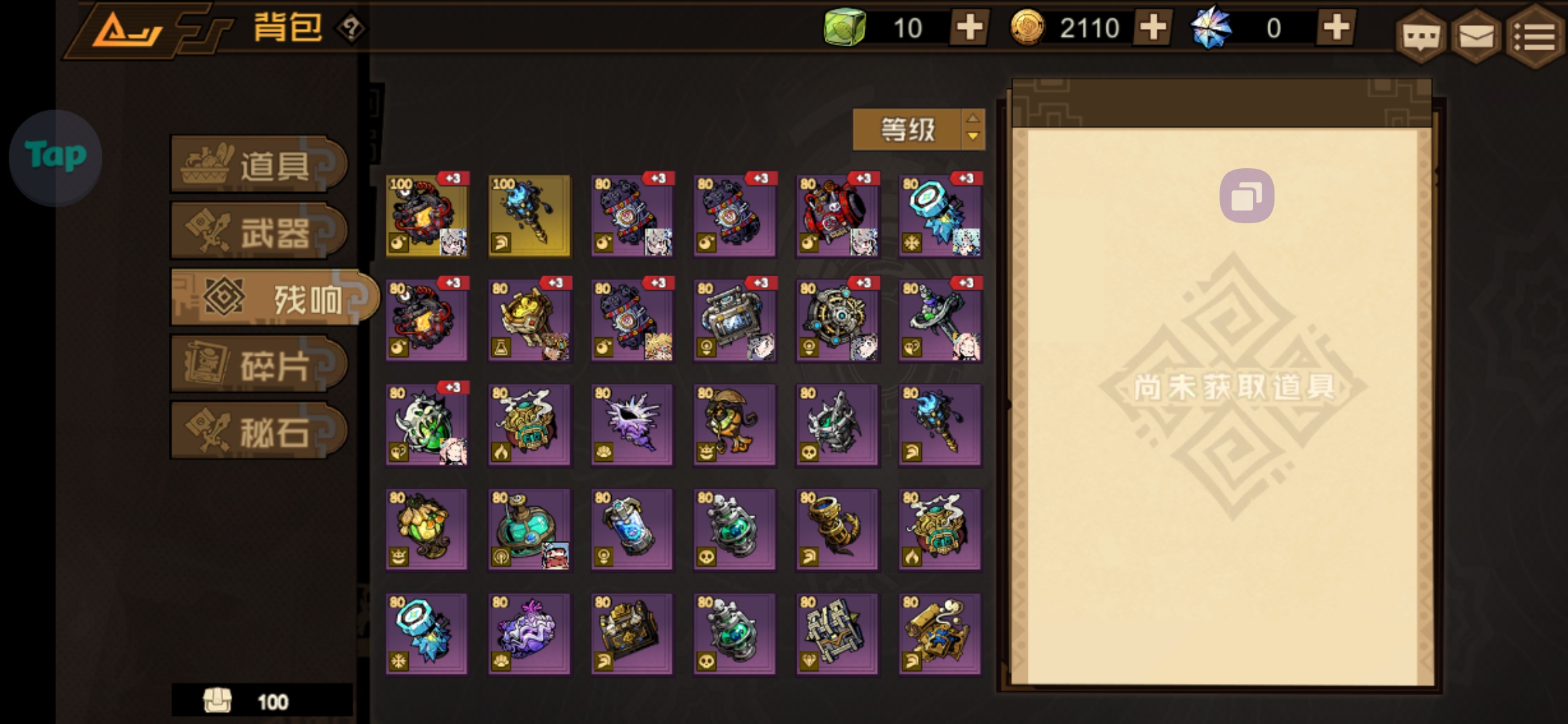 残响:不要刻意追求,因为只是前期阶段,有用的就用别去追求:配套、属性、数值等,也是有等级的看下图