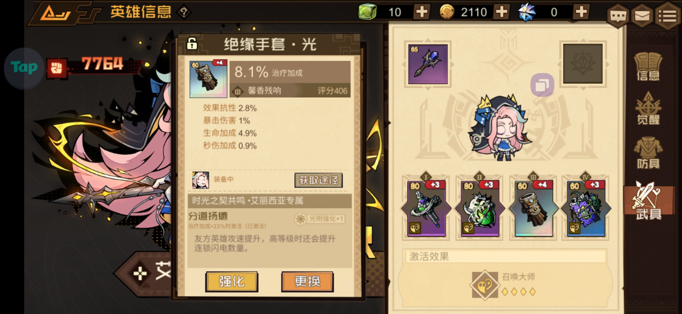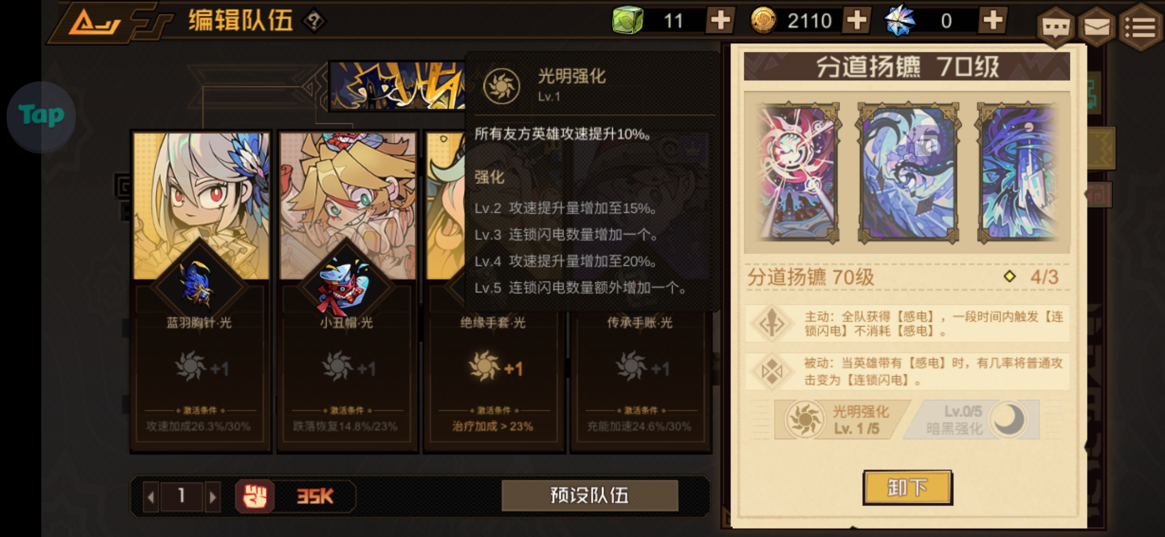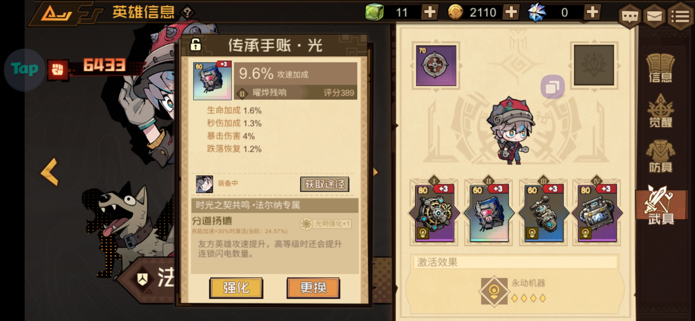 首先看神器共鸣,专属残响激活后是可以和神器共鸣的(光明强化)、(黑暗强化并未接触到)。看下图光明强化增加属性,只要专属残响及残响属性及属性值达到要求就可以激活光明强化。所以为什么我说最好用同一系列的英雄。