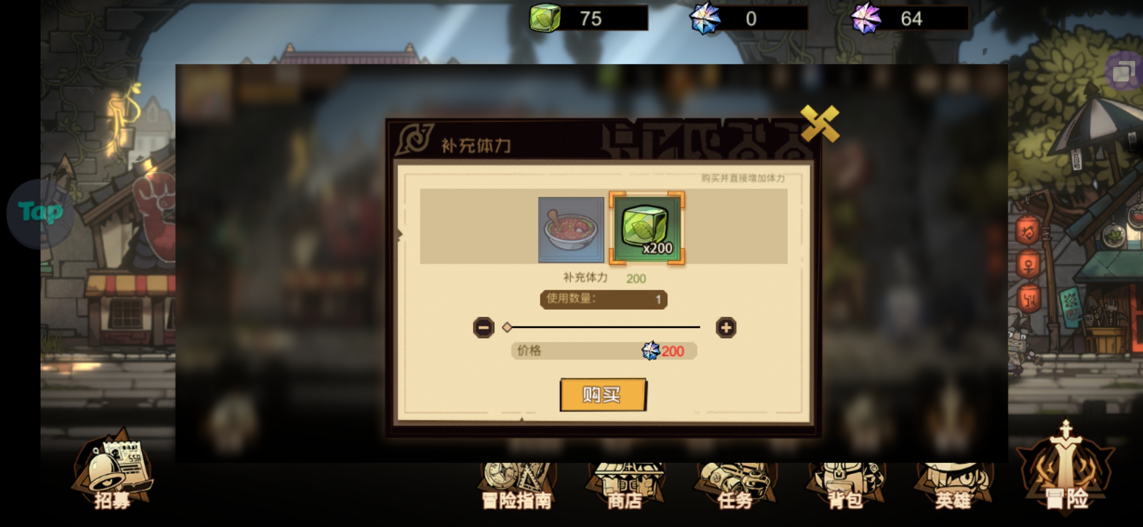 小镇杂货:每天体力购买,每天刷新三次没必要。因为每个体力包50体力