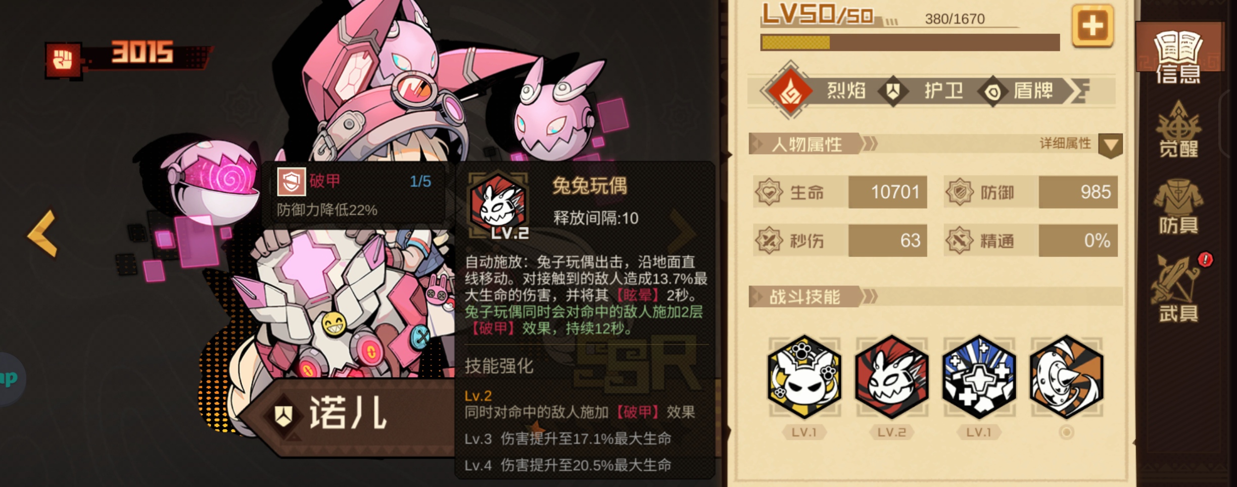 对抗爆发自保能力最强的护卫,诺儿大招有着4秒无敌来无伤接下BOSS的技能爆发。
