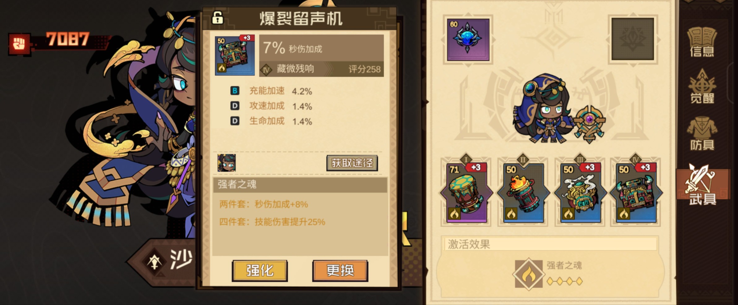 回响~ 可以看到沙拉曼的伤害近乎全是技能伤害,所以回响建议携带+技能伤害的强者之魂。