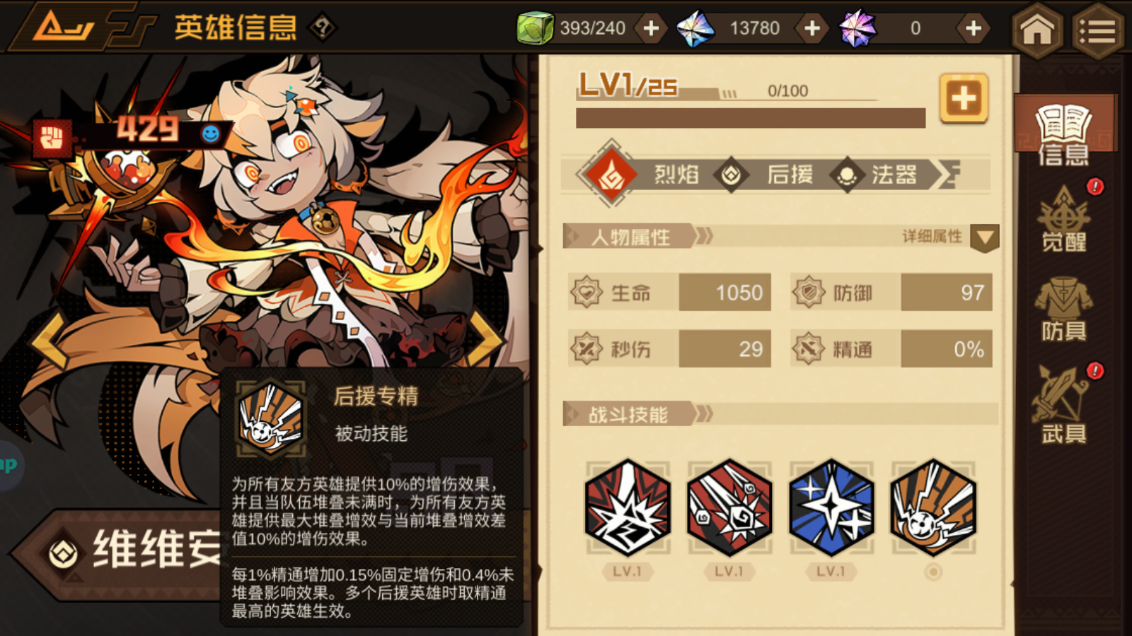 技能强化:每1%精通增加0.15%固定增伤效果和0.4%未堆叠影响效果。多个后援英雄时取精通最高的英雄生效
