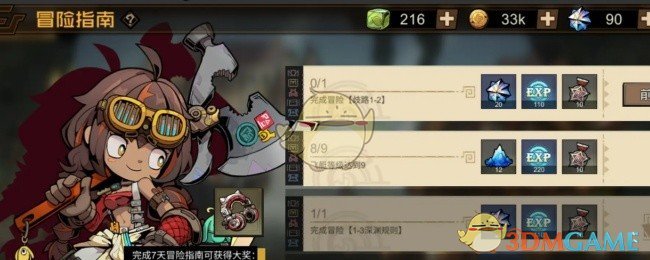叠入深渊怎么不能升级,玩家在冒险等级8,发现无任务可接,升不上9级,打不了新怪,升不了级,拿不了新关卡装备,好像陷入一个死循环。别着急,打开游戏中的冒险指南任务把消防员的武器给他装备上去,领完任务奖励就能到9级了。赶快去试试吧!