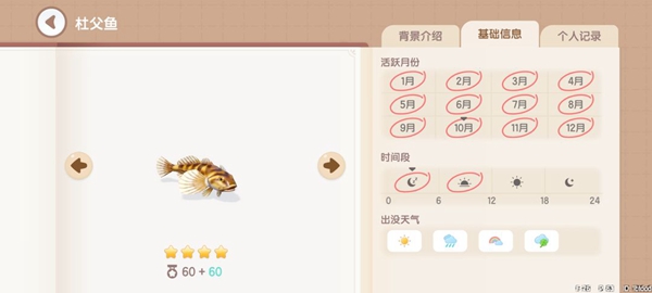 杜父鱼:获取地点,地图上的所有湖中均可钓到。获取时间,0~12。