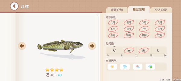 花鳅:获取地点,地图上的所有河中均可钓到。获取时间,18~24。
