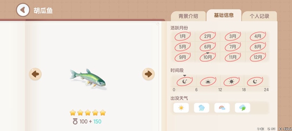 驼背太阳鱼:获取地点,地图上的所有湖中均可钓到。获取时间,幸运天0~24。