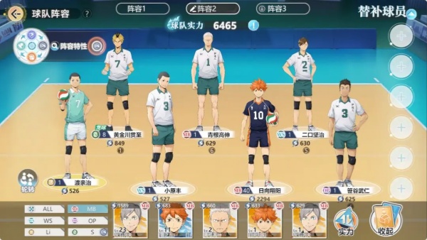 推荐玩家选择二口坚治为主攻手、青根高伸为副攻手、黄金川贯至为二传手。