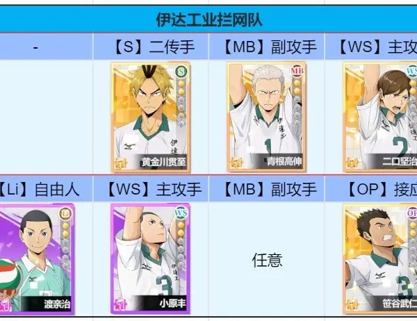 这个几个角色搭配可以大幅度增强拦网属性,为对方球员附加激怒效果。