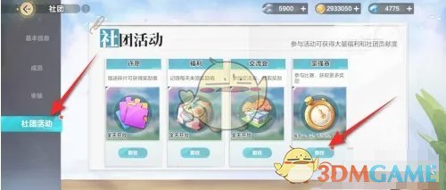 1、首先我们点击游戏主页的社团玩法前往;