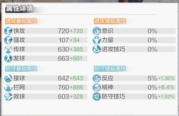 接下来,1号位潜能主属性有拦网,接球,强攻,快攻,传球五种属性;2号位主属性有发球,传球,意识,强攻,快攻;4号位主属性有接球,救球,拦网,反应四种属性;6号位则是拦网,接球,快攻,强攻,传球,救球,进攻技巧和防守技巧八种属性。副属性所有的属性都可能出现,并且在一个潜能没有四词条的情况下每升3级会增加一条新的属性,满词条后增加副属性数值,由此我们可以开始所有主流角色潜能推荐了。