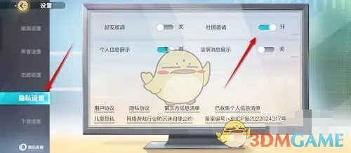答:前往设置页面,找到社团邀请,勾选开启或者关闭即可。