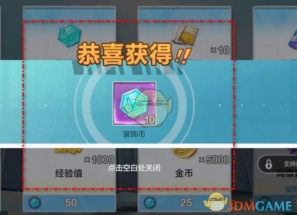 4、最后完成购买后即可获得装饰币的道具货币;