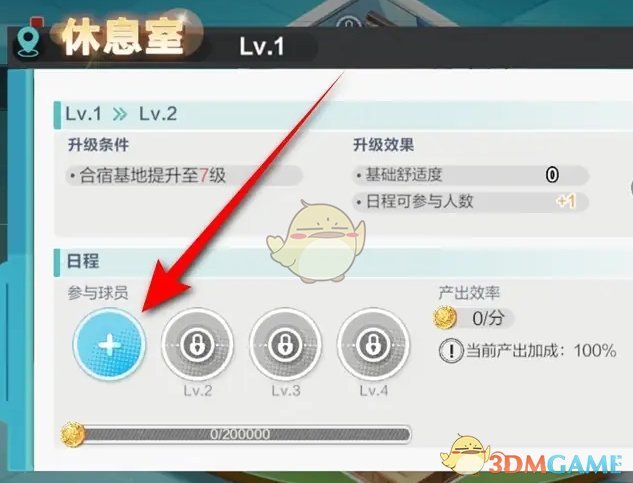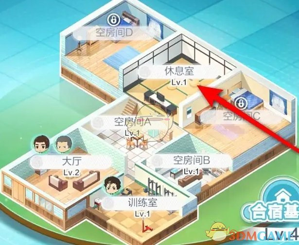 2、前往合宿基地后,点击休息室玩法前往;