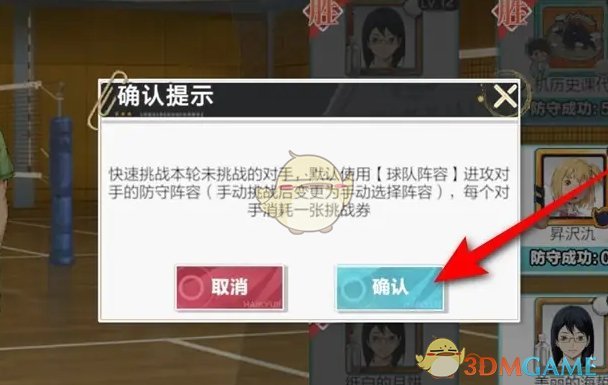 4、在弹出的确认提示页面,点击确定即可快速开启训练馆挑战;