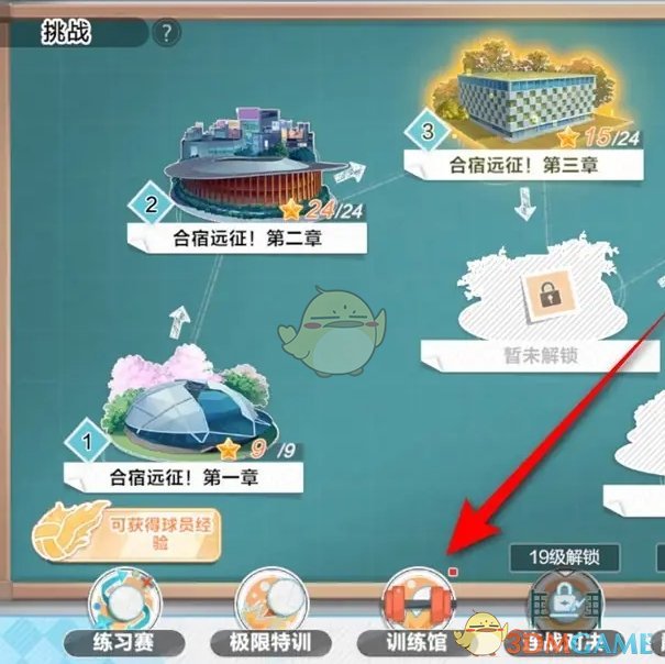 2、在挑战页面,点击左侧下方的训练馆功能前往;