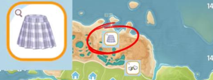 1、首先玩家前往温泉山湖的偏上中央区域能够在地图上看见格纹百褶裙图标。