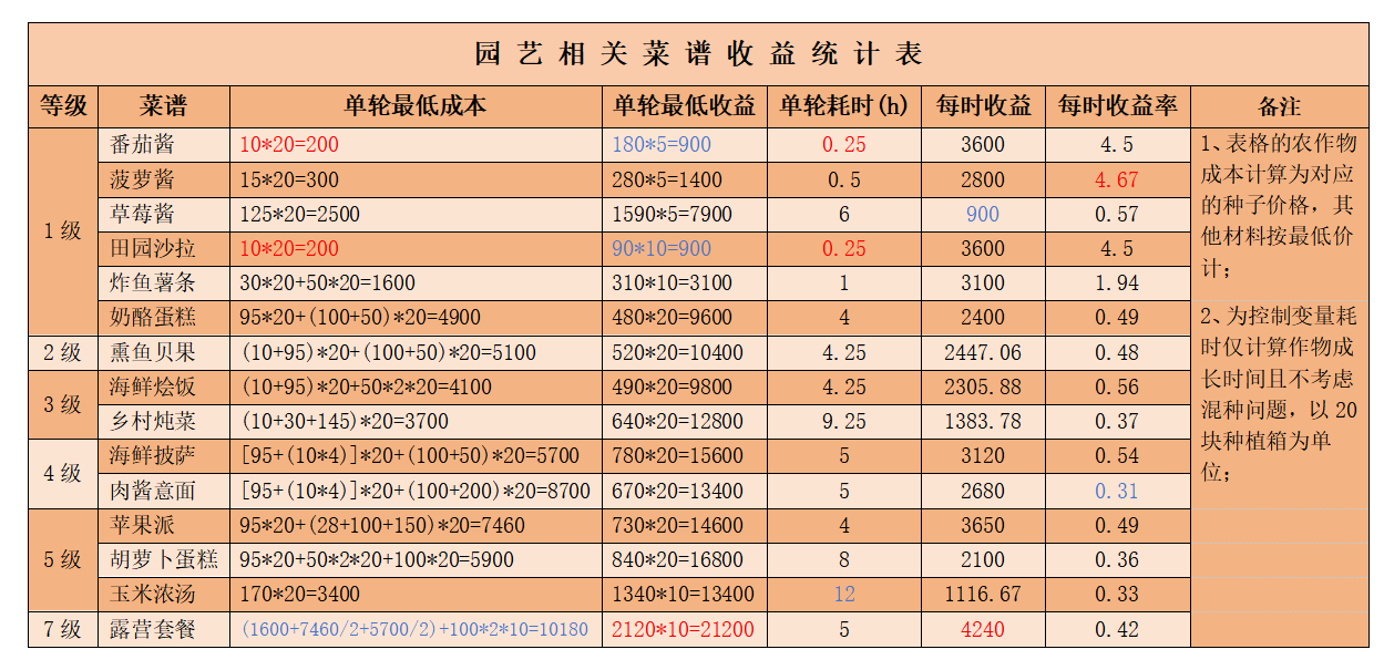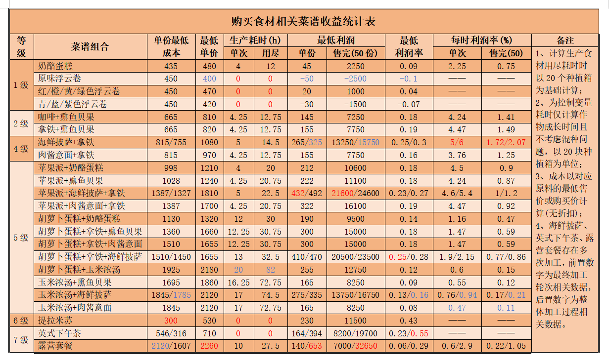 以上就是小编整理带来的《心动小镇手游》公测食谱收益统计,更多精彩内容,请点击关注易采游戏网,小编将持续为您更新!