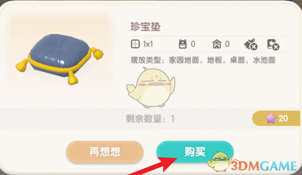 3、最后花费20个许愿星点击购买即可获得珍宝垫;