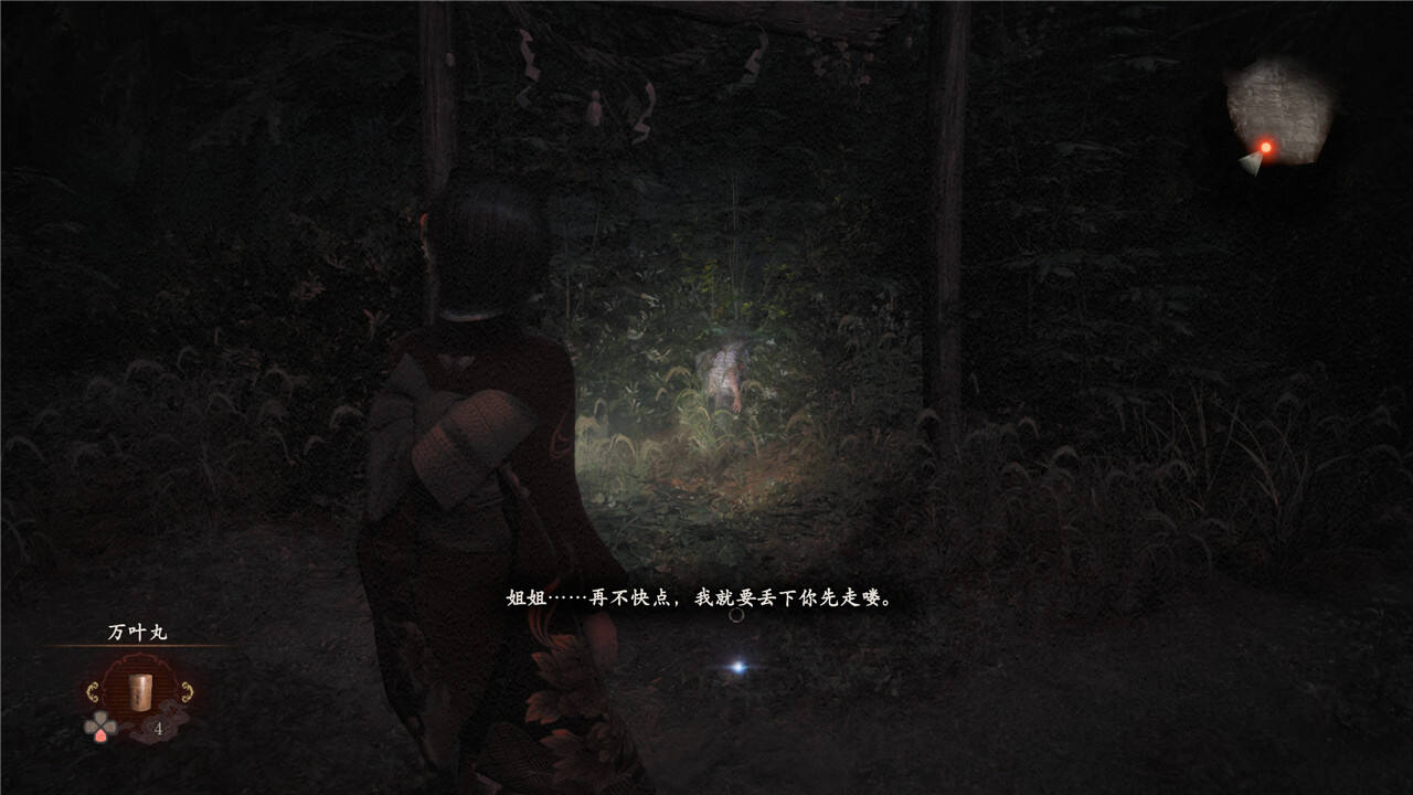 前往【皆神村 庭院】,可以看到小时候姐妹的浮灵,拍照并捡取【发光的澪的灵石碎片】