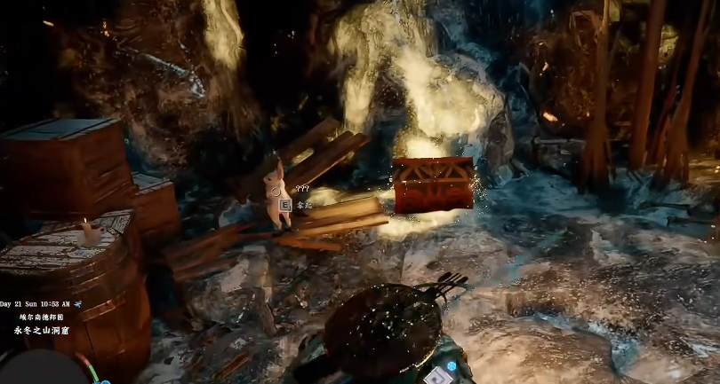如果不按住冲刺键,角色会因地面湿滑而一直跌倒,严重影响探索效率。保持冲刺状态直到到达深处,即可发现一个隐藏的宝箱。