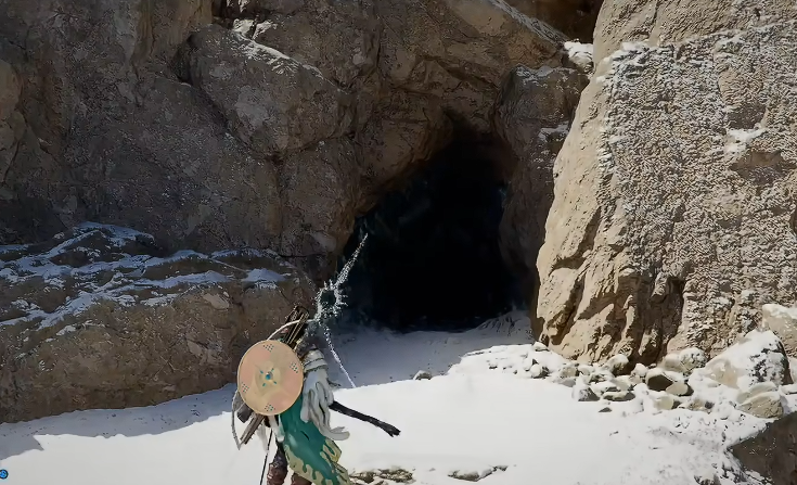 进入洞窟之后,玩家会看到永冬之山洞窟的内部结构。此时需要特别注意移动方式,顺着山洞一直往里走,这里要按紧 shift 键进行冲刺向下移动。