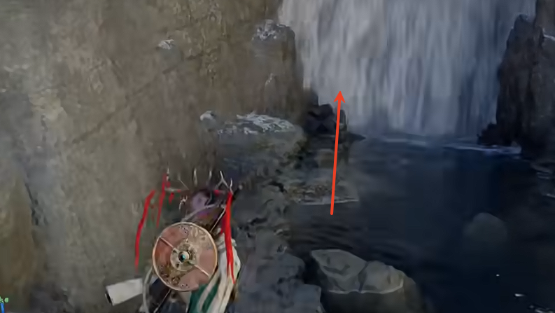 寻找瀑布,在该区域找到一处瀑布,瀑布前通常有塔型落石或小石堆作为明显标记。