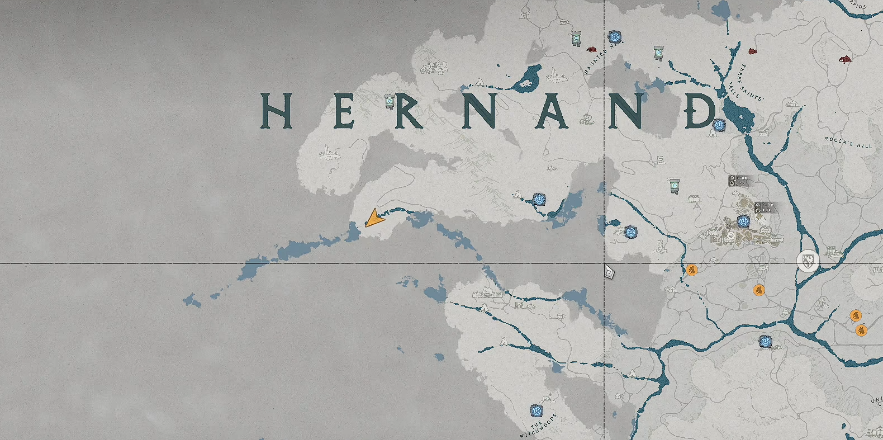 定位区域时,打开地图,找到字母 E 与字母 R 的正下方区域。
