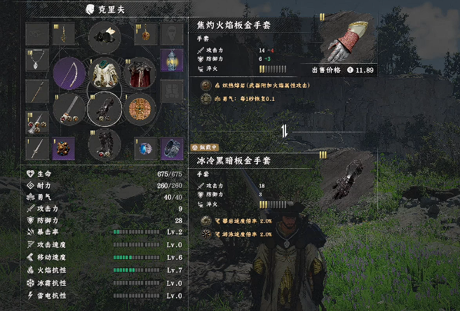 焦灼火焰板金手套在德梅尼斯城西北黄昏之环洞窟,开局可拿。从山涧跳下到瀑布平台,用刺击穿瀑布进隐藏洞穴,开中央宝箱即可获取。手套防御加五、攻击加十二、火抗等级三,火攻触发范围爆炸。