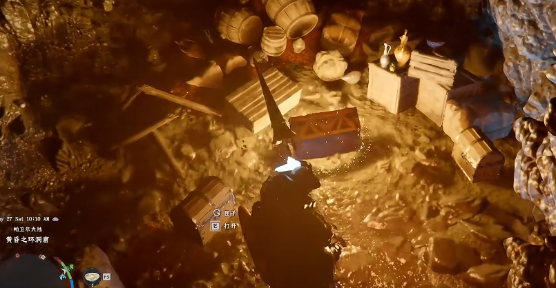 洞穴内中央有宝箱,打开直接获得焦灼火焰板金手套。