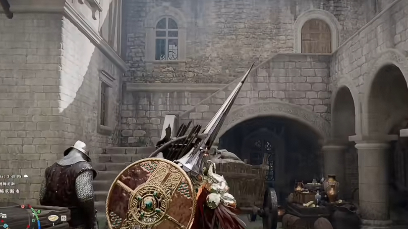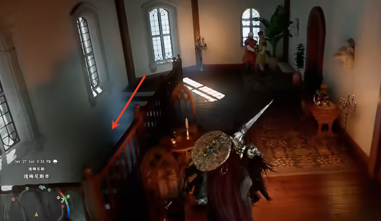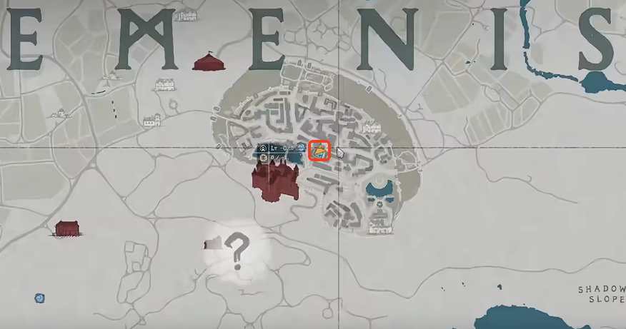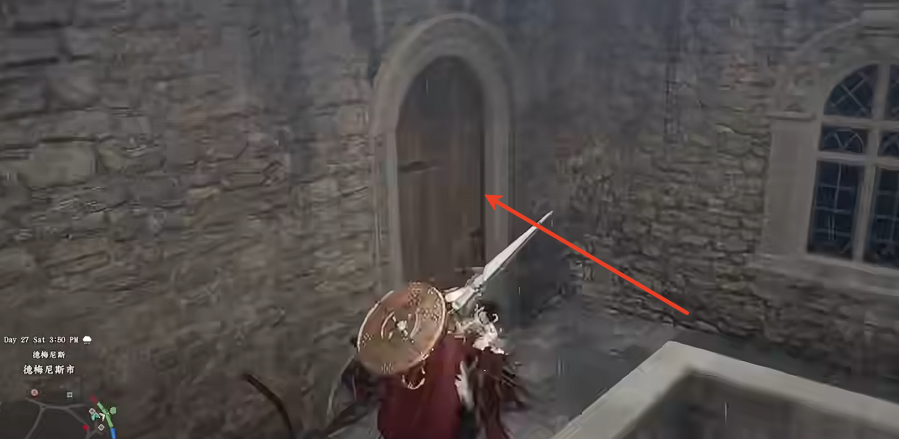 前往德梅尼斯城主城,从主城西侧出口出发,沿道路直行进入西庭院。