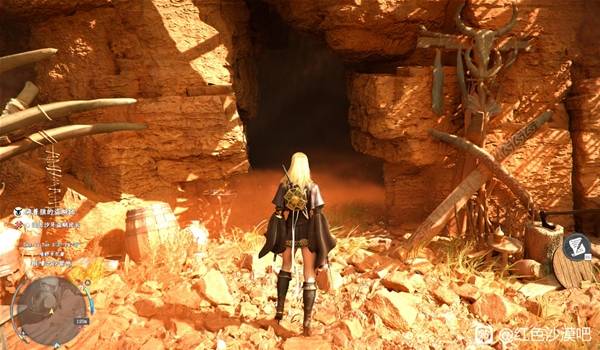 根据图片中人物所处的位置前往,该区域内部是一个敌对营地。不过需要注意的是,这里沙尘暴非常大,导致能见度极低,敌人看不见你,你也看不见他们,所以无需过于担心安全问题。接下来展示的是装备后的上身效果,供各位玩家参考。