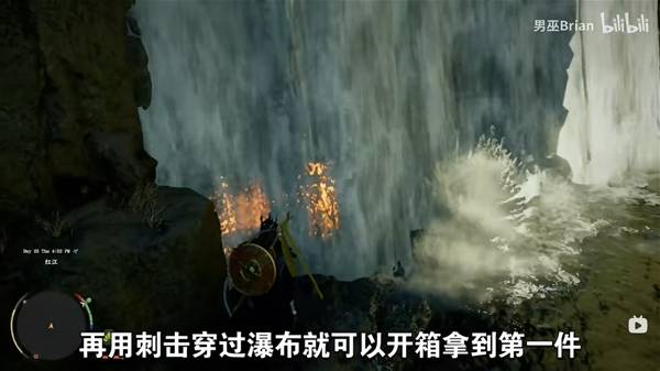 当玩家抵达指定位置后,会看到一个明显的瀑布景观,这里隐藏着通往宝箱的秘密路径。