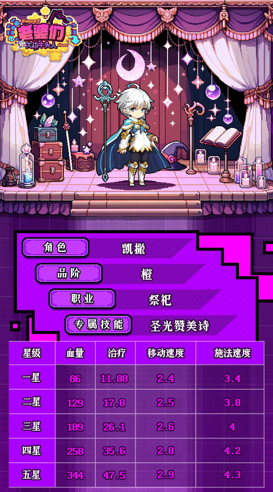 本篇给大家带来了《老婆们大战牛头人》凯撒配队养成攻略!凯撒,圣光赞美诗,T奶二合一 。皇都作为旺迦大陆最核心的城市,拥有各种完善的机构。其中圣祷协会是掌管皇都所有祭祀的官方机构。凯撒作为皇都圣祷协会会长,大圣祭祀头衔持有者,一直在协会不断研讨和规范祭祀,倡导治愈与救赎理念,在皇都是被众人敬仰的存在。