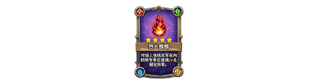 携带技能卡「烈火熊熊」算准天罚塔释放的技能的时间,提前使用技能卡攻击己方随从使其不再满血,规避天罚塔伤害。