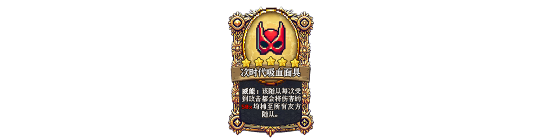 威能:该随从每次受到攻击都会将伤害的50%均摊至所有友方随从。