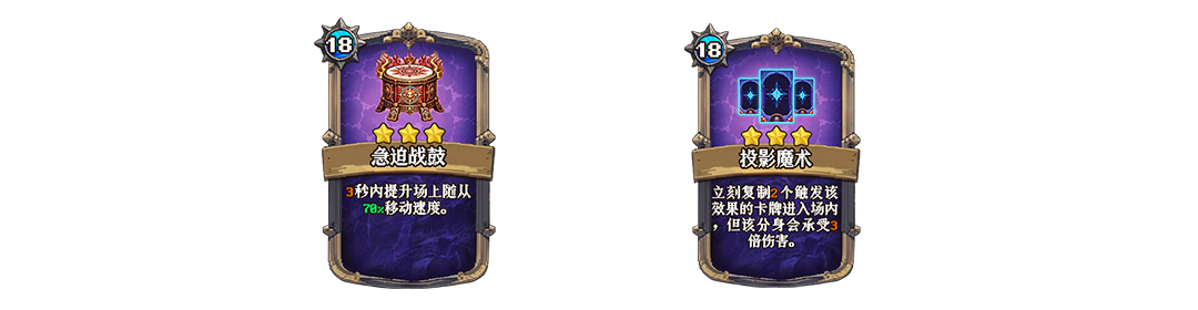 携带「急迫战鼓」 3秒内提升场上随从70%移动速度。