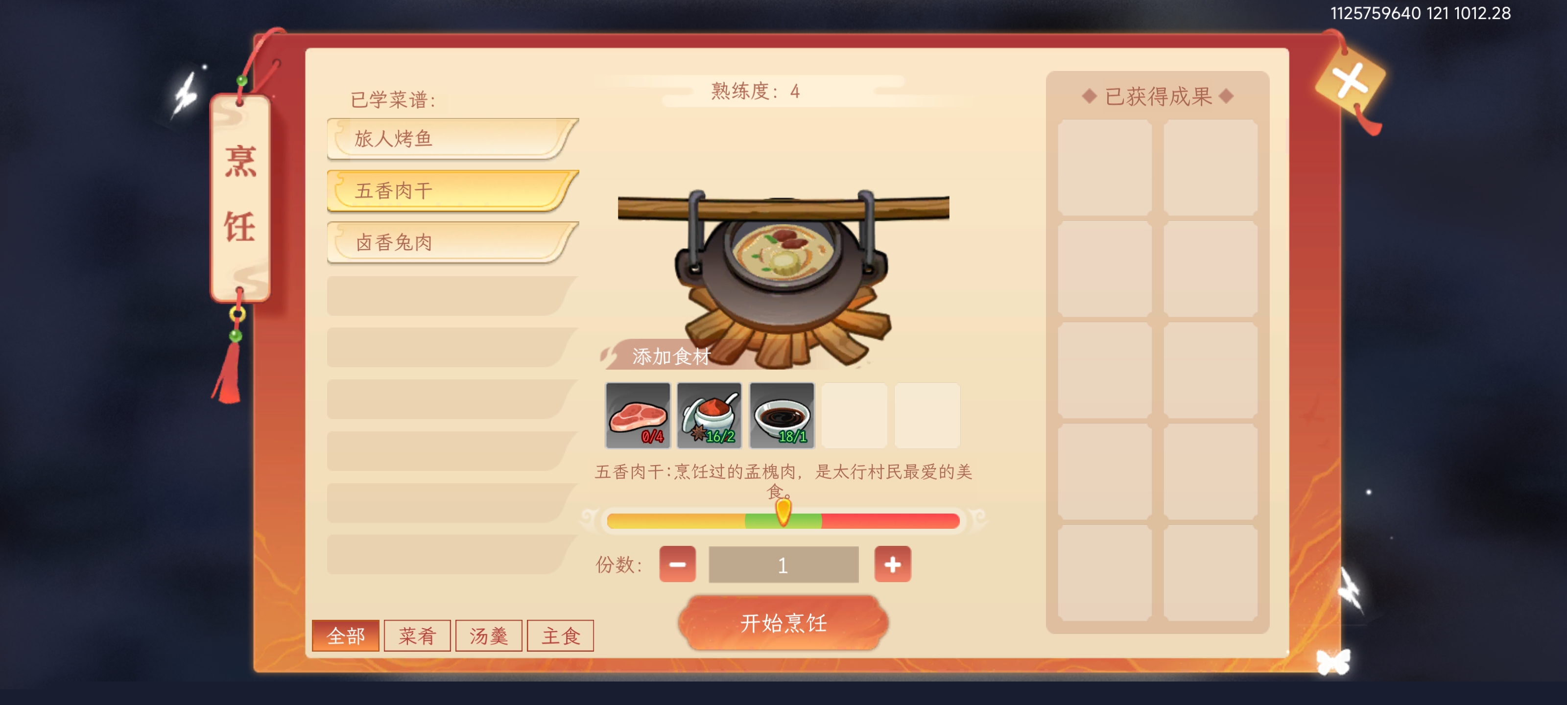 肉是需要打大地图中的刺猬必掉落1肉,打120次需要720精力,佐料和酱油需要去地图城池里的杂货店购买,每个城池每日限购10份。